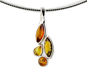 Die mehrfarbigen Bernsteine dieser Anhänger wurde geschliffen, poliert und hochwertig in Sterlingsilber 925 gefasst. Der cognac- und citrinfarbene und grünlich schimmernde Bernstein mit seinen Luft- und Pyriteinschlüssen kommt wunderschön und dekorativ zur Geltung.