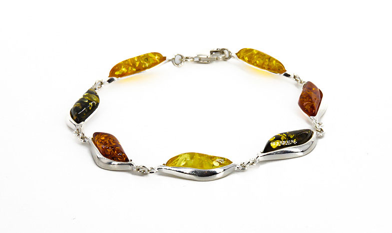Dieses Armband ist hochwertig verarbeitet und überzeugt durch den in Sterlingsilber 925 gefassten, in mehreren Farbenschimmernden Bernstein. Die schlichte Gestaltung richtet den Focus auf die Schönheit des Bernsteins mit seinen Luft-und Pyriteinschlüssen.